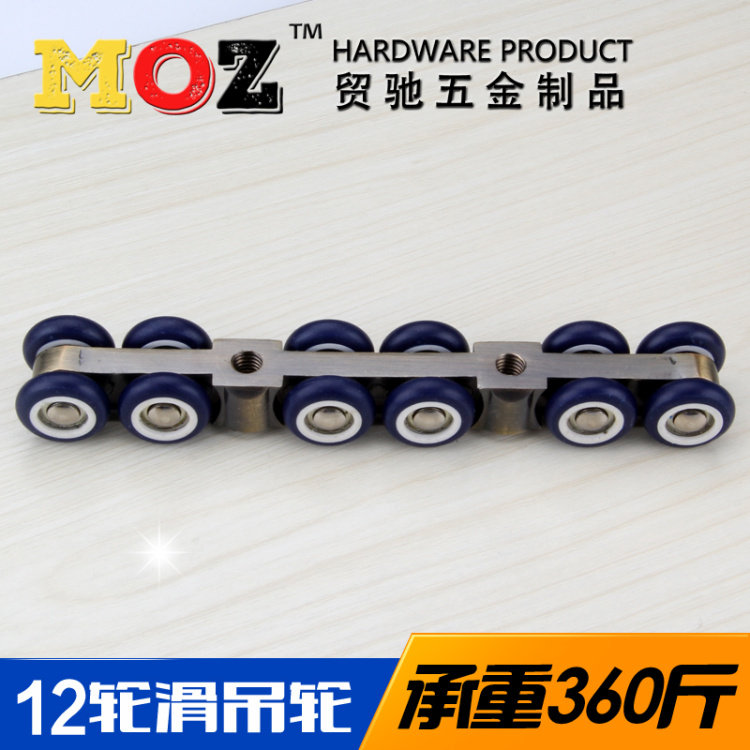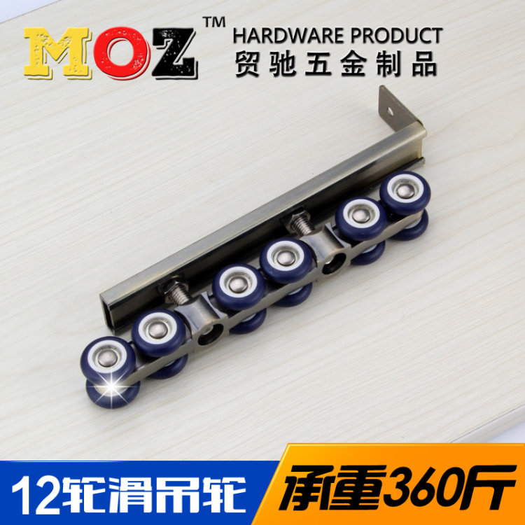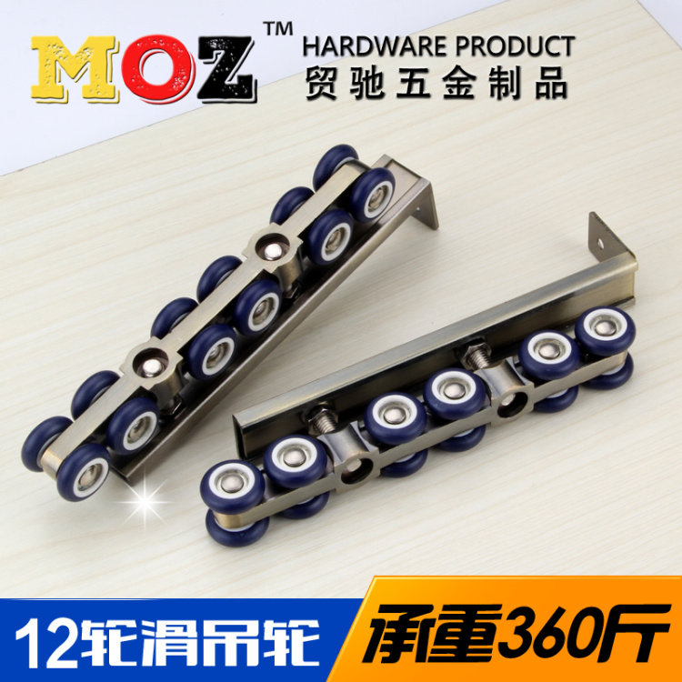 Solid zinc alloy wooden door sliding door pulley sliding door hanging wheel mute 12-wheel hanging rail track roller engineering hardware