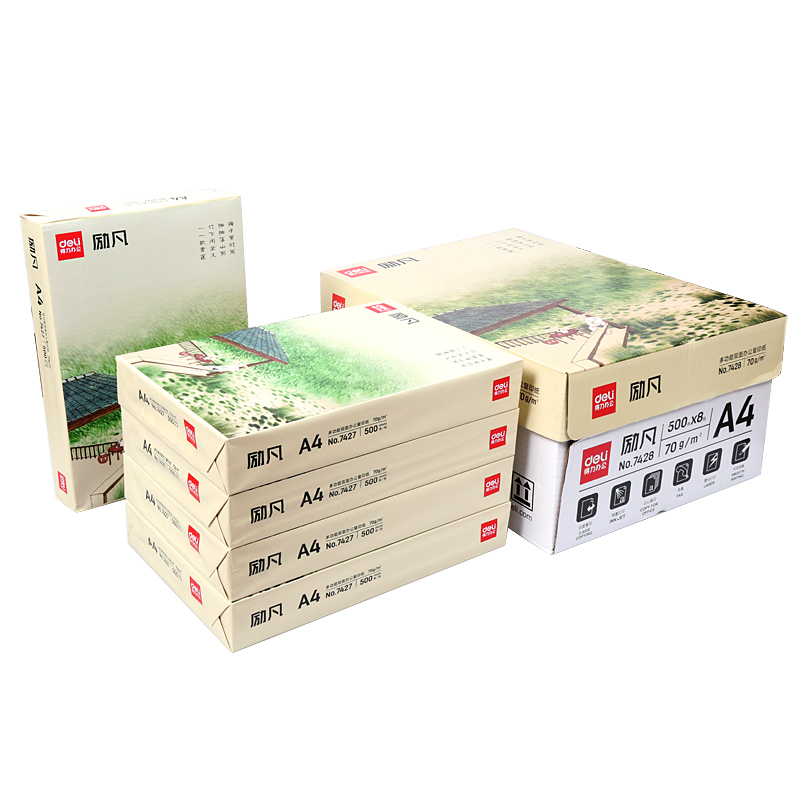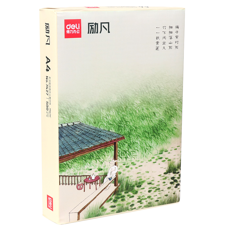 8 Packaging Deli stationery Rhine Green Cypress Reed Fan Print copy paper Green Cypress A4 paper manuscript paper Reed Fan 500 sheets pack 70g office paper