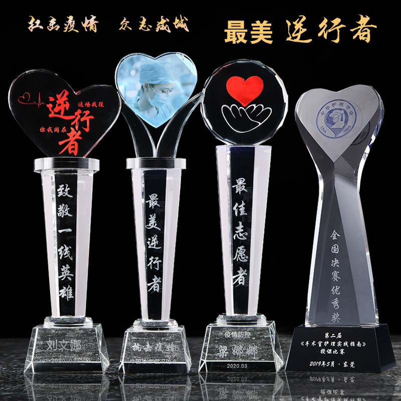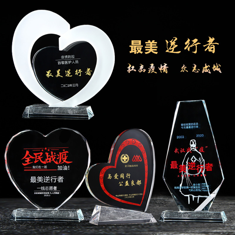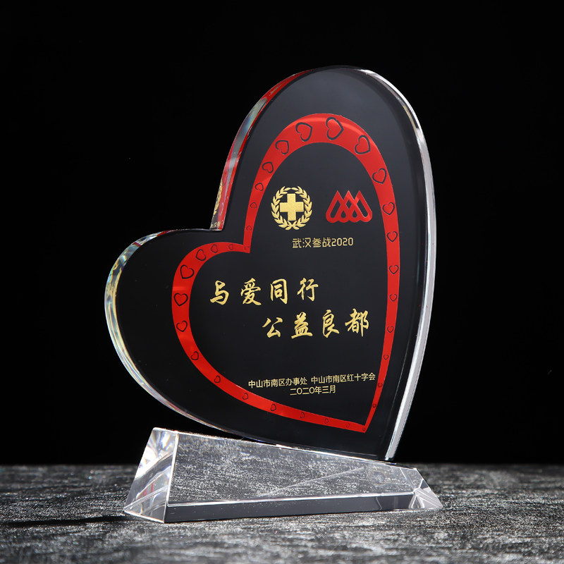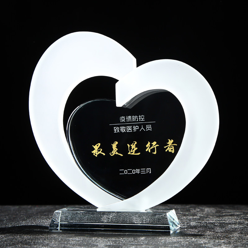 Crystal Love Trophy for Heart-shaped Custom Teacher's Day Epidemic Charity Medical Public Benefit Activities of the Anniversary Souvenirs