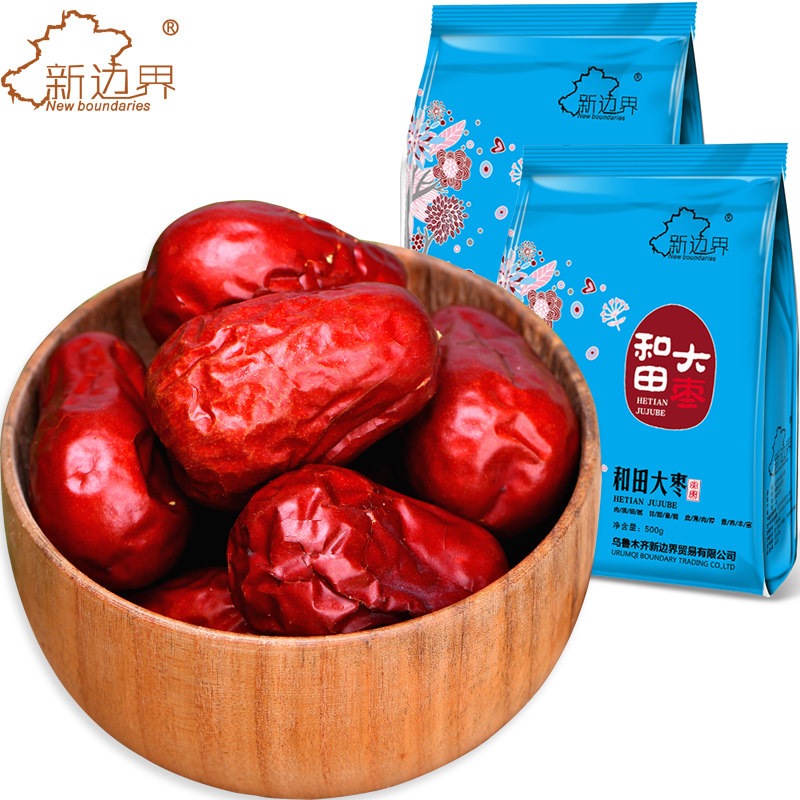 New border red jujube 500g*2 bags Xinjiang specialty premium Hetian red jujube dried fruit snack Dajun jujube jade jujube