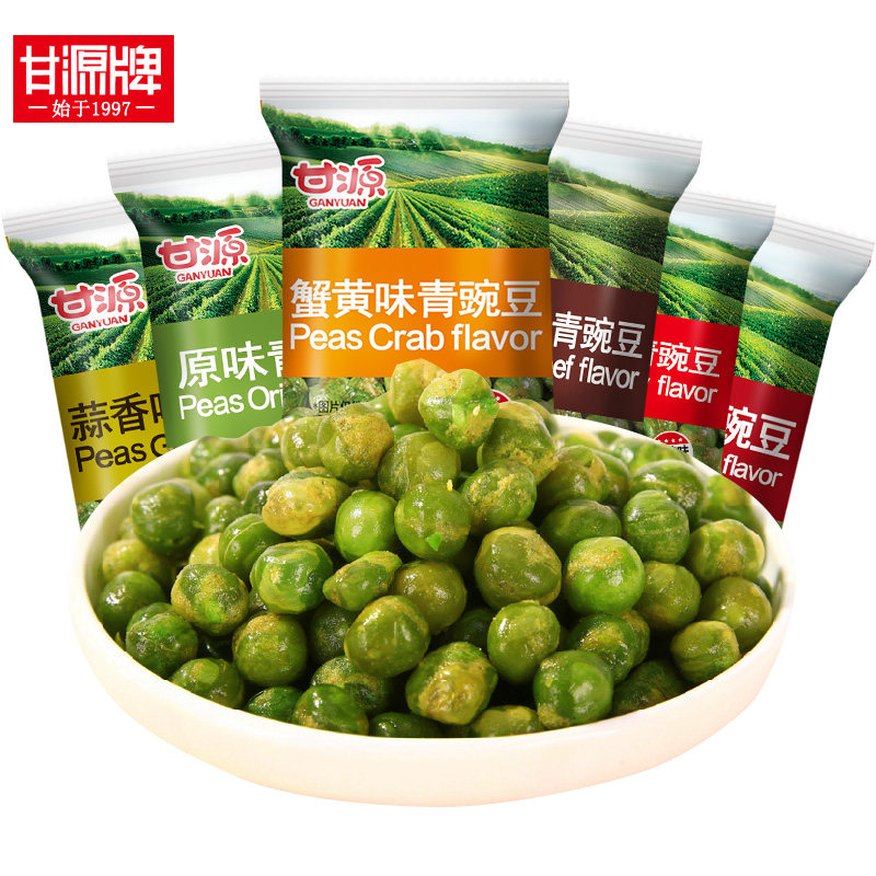 Ganyuan green beans official flagship store Garlic flavor spicy green peas nuts snacks Small packages mustard snacks
