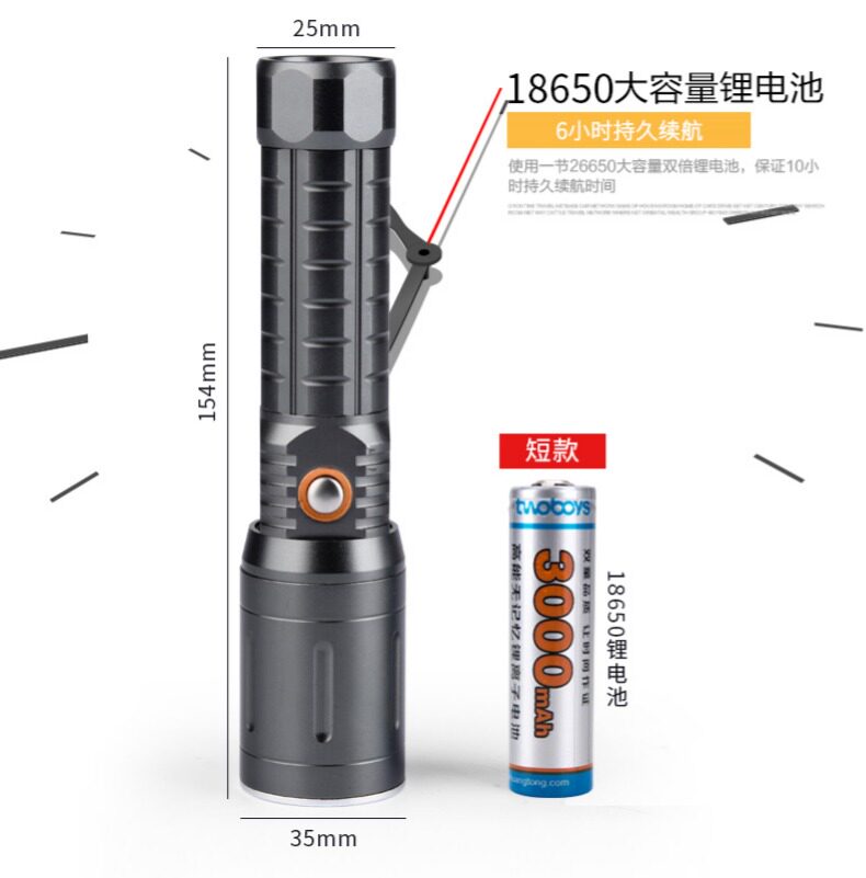 Double Child Bright Light Flashlight ST-3125 Charged Zoom 18650 Lithium Battery Super Bright Outdoor Home Far Shot 10W
