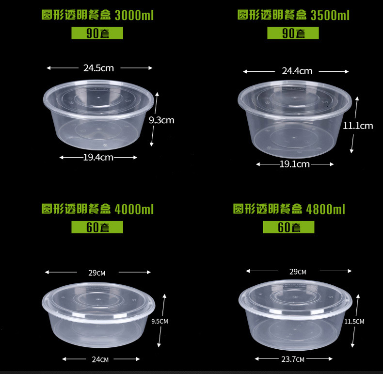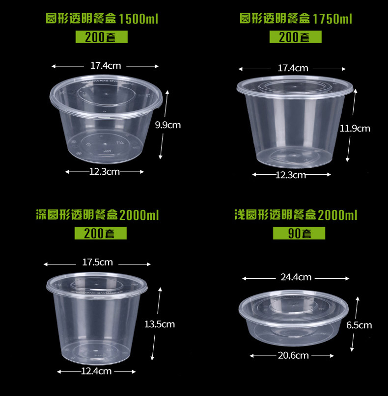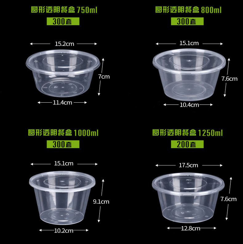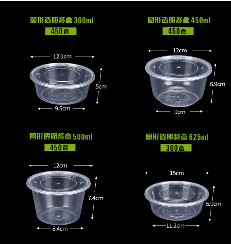 Transparent round 300ml (450 sets) Transparent round 450ml (450 sets) Transparent round 500ml (450 sets) Transparent round 625ml (300 sets)