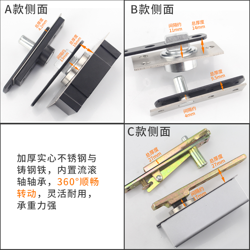 Heaven and earth hinges, heavy-duty upper and lower hinges, 360-degree rotating axis hinges, hidden invisible door positioning, heaven and earth door shafts