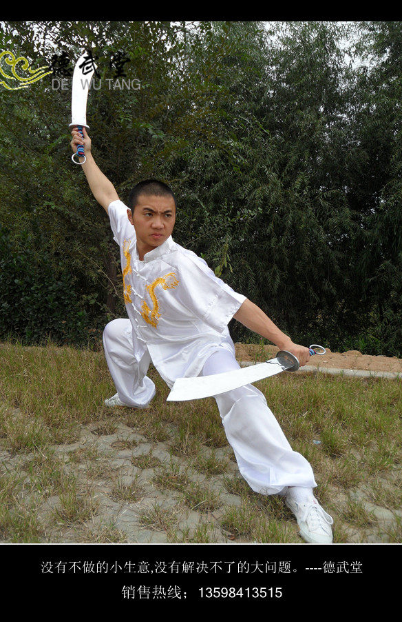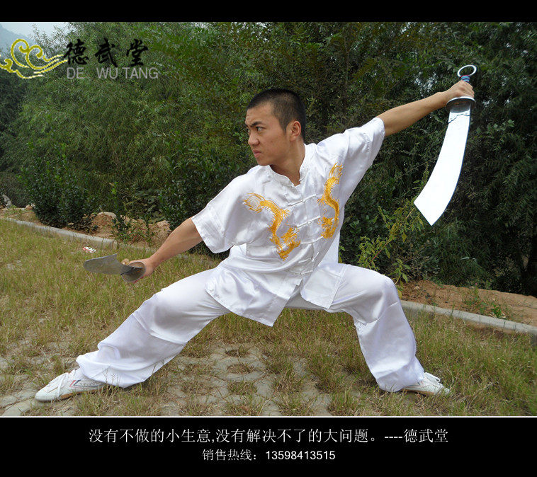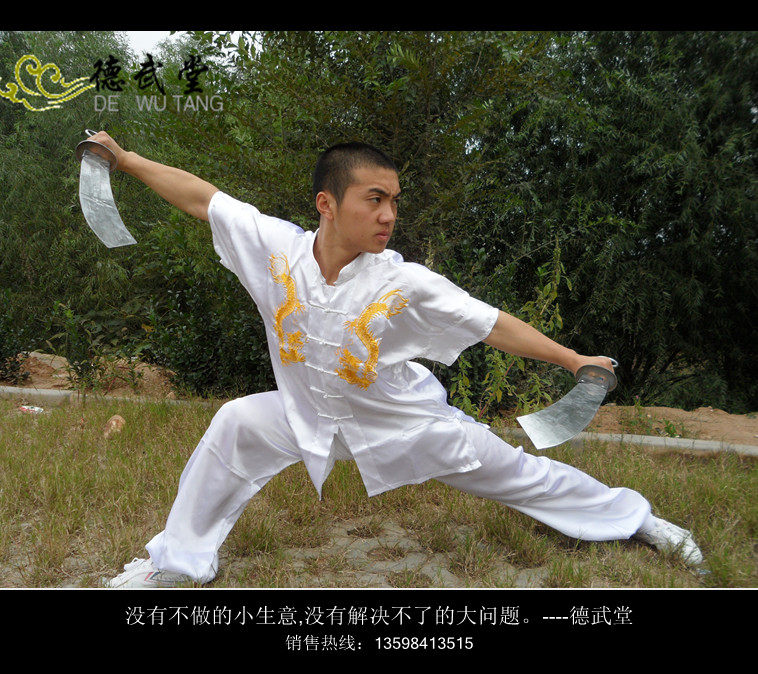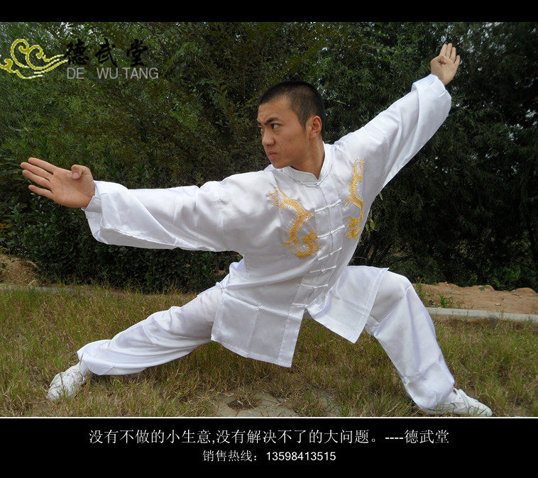 White Double Embroidered Dragon Tai Chi Suit Martial Arts Suit Performance Suit Long Boxing Suit Practice Suit Spring and Summer Tai Chi Suit Long Sleeve Short Sleeve