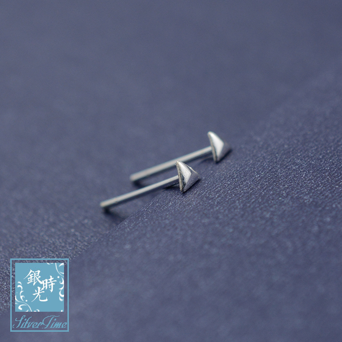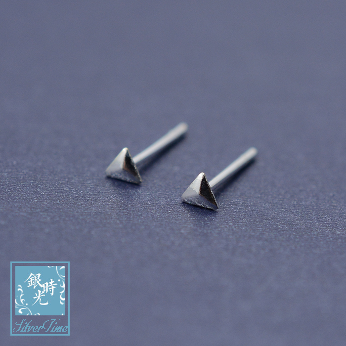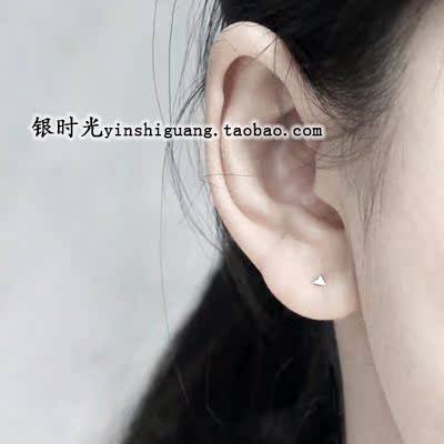 Silver time S925 pure silver ear needle ultra small mini triangular solid earrings earbone nail fashion personality earrings