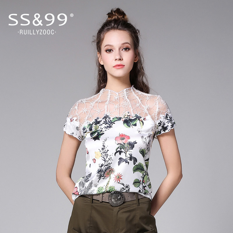 Lace bottoming shirt very fairy top foreign style short-sleeved new small shirt women wear chiffon fashion slim high-end summer