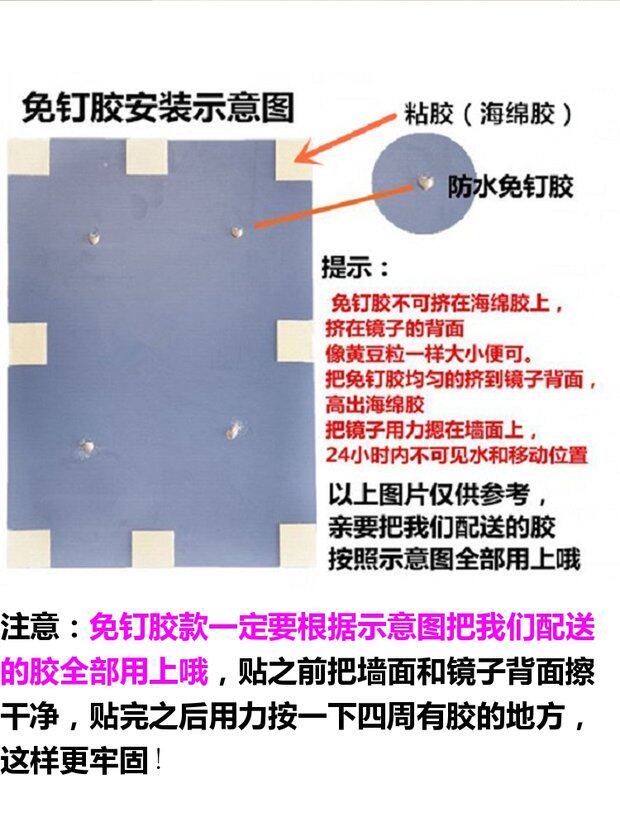 Bathroom mirror Hole-free powder room wall-mounted mirror Toilet vanity glass mirror Wash bathroom half-body mirror Wall-mounted mirror