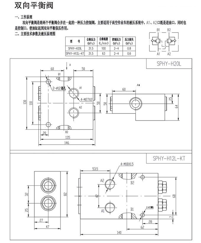 SPHY-H12L-KT bidirectional balance valve hoist cylinder bidirectional pressure-pressure stabilization flow engineering hydraulic lock BEST
