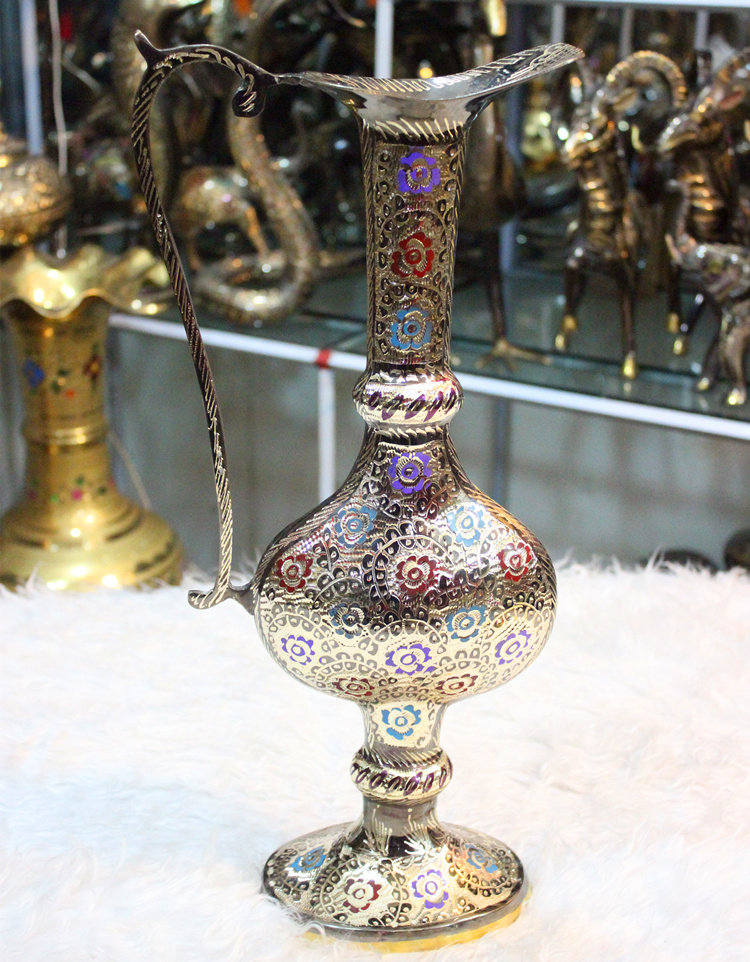 Pakistan handicrafts imported bronze bronze sculpture 18-inch ethnic flat pot home decoration gifts BT576
