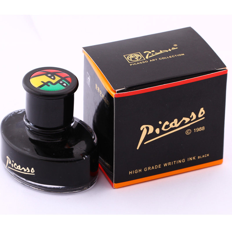 pimio Picasso ink fountain pen Water non-carbon non-blocking pen Large capacity bottled non-carbon ink blue black Black Blue dye type 50ml ink fountain pen