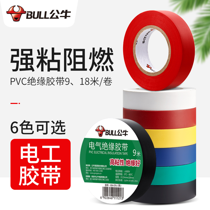 Bull electrical tape Insulated electrical tape Wire high temperature resistance not waterproof PVC white cross cloth 9 meters large volume wholesale