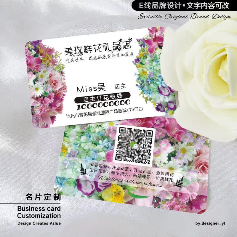 Flower shop business card design production florist flower green potted shop wholesale creative PVC card printing