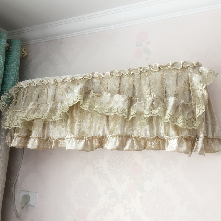 New fine beige suede hanging air conditioning cover upscale cloth art lace floral side wall-mounted air conditioning dust cover