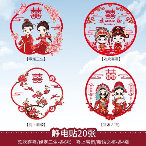 Happy-word static sticker to buy 20 sheets of sending 20 pieces of wedding celebration items Wedding Happy Character Glass Windows Flowers Delight