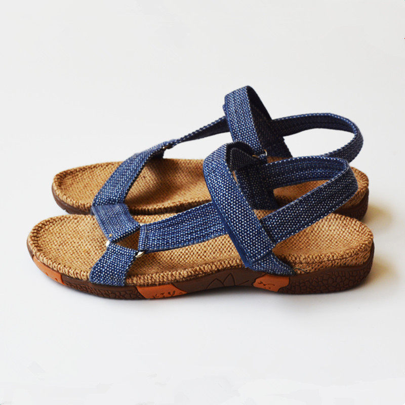 Jin Shuo linen sandals women's flat arch pad summer women's shoes national style