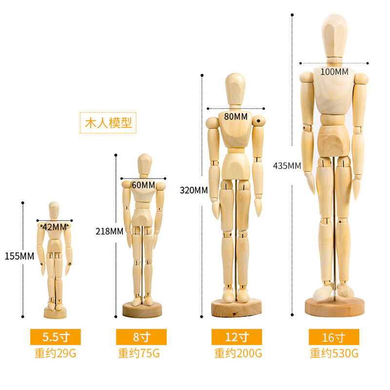 Cartoon puppet man ornaments 12 inch joint doll human lignin drawing wooden doll small wooden joint human model painting wooden man Wooden hand villain rotatable wooden man art supplies