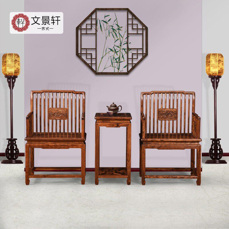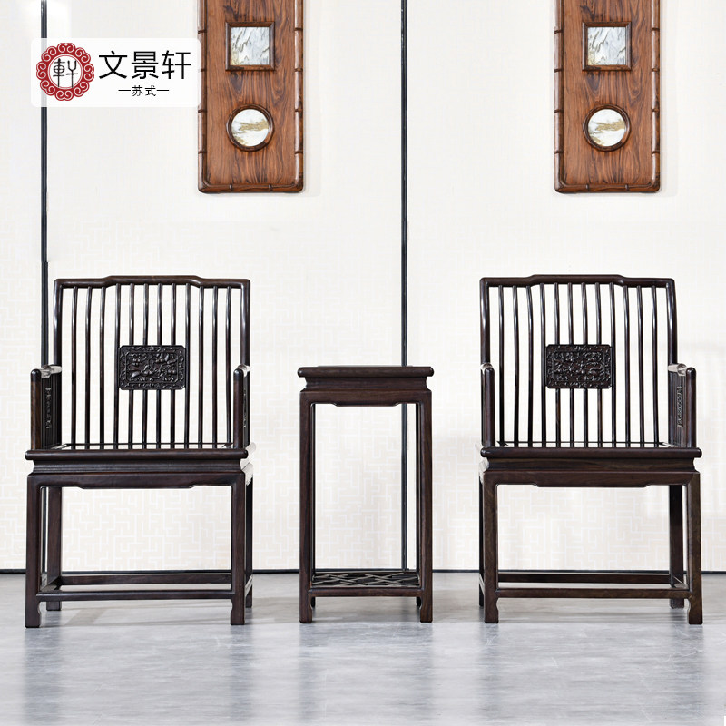 Wen Jingxuan mahogany taishi chair three-piece pen chair, Chinese comb back chair, Ming style rose chair, purple sandalwood backrest chair