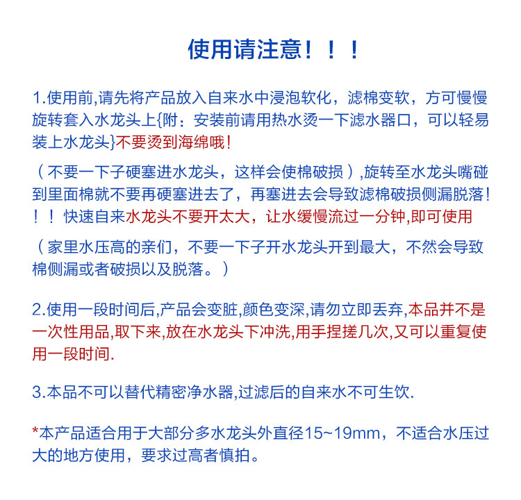 Household tap water faucet splash filter sponge water filter cotton tap water filter water filter water purifier