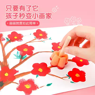Sponge seal painting tool Extension stick Kindergarten children's painting set painting mushroom head sponge stick painting brush