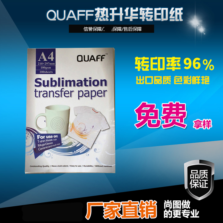 QUAFF brand A4 sublimation transfer paper Polyester fiber T-shirt printing paper Porcelain plate baking cup transfer paper