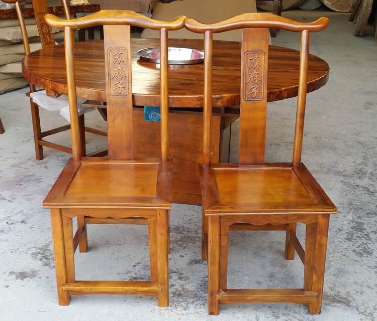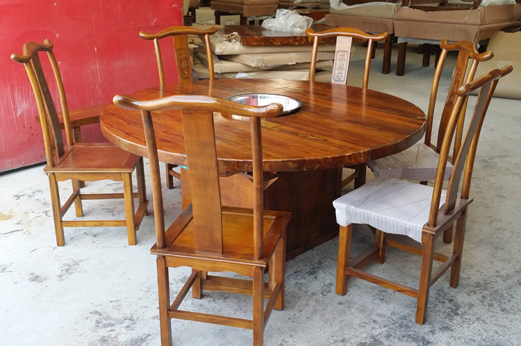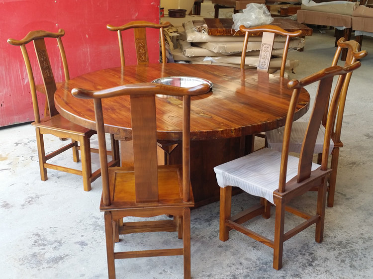 Factory direct sales of old elm hot pot round table and chairs Korean self-service barbecue table hot pot barbecue table and chair customization