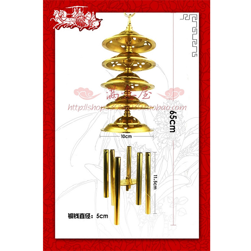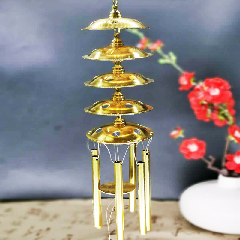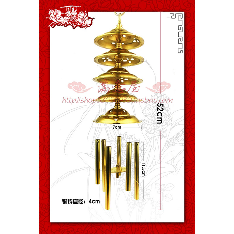 Fuxing five yellow and two black special pure copper wind bell 3 inches 5 inches 5 layers 6 tube copper wind chimes pendant lucky town house bell