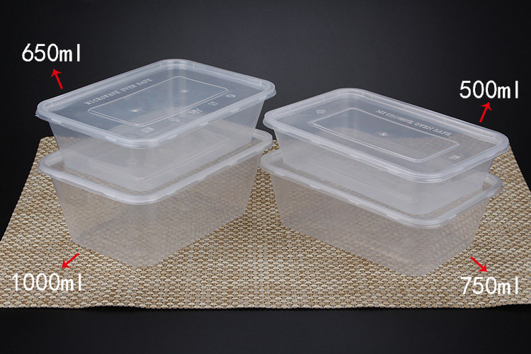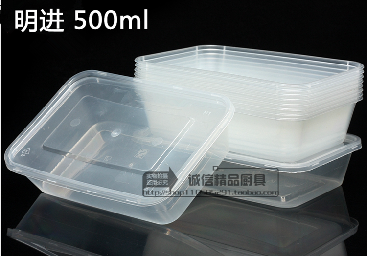 Minjin thickened type disposable square transparent plastic dining box packed lunch box 500ml650ml750ml1000m
