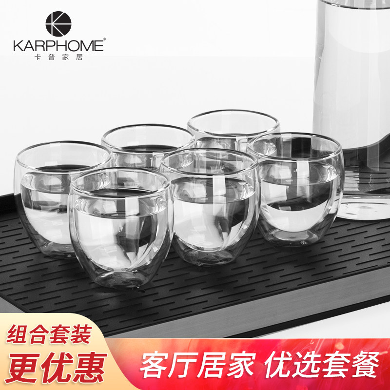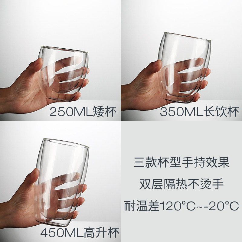 Heat-resistant double-layer glass set Household anti-hot water cup Teacup mouth cup Insulated milk coffee cup large capacity