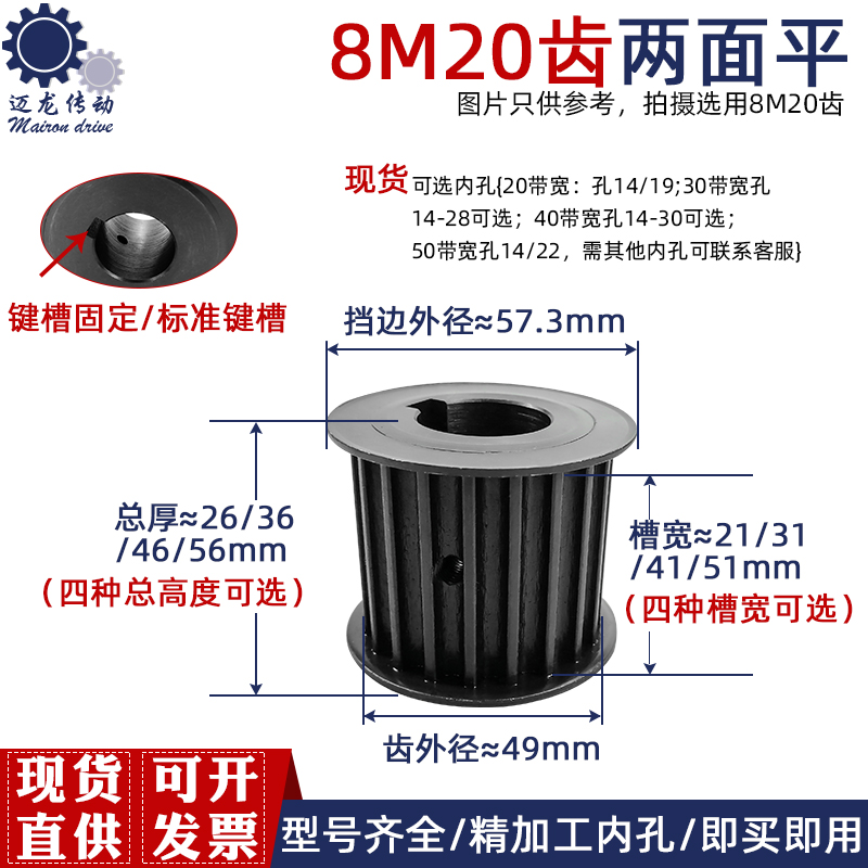 Synchronous wheel spot 8M-20 teeth standard keyway can match the speed ratio of industrial pulley Synchronous pulley set combination