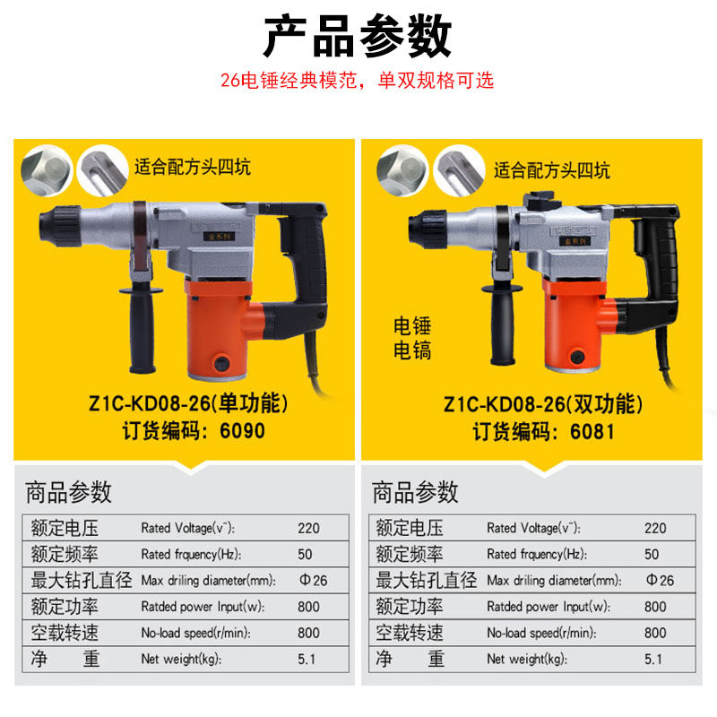 Type 26 single use electric hammer 26 type double electric hammer drill single with 26 electric pick 28 type double electric hammer drill (small spearhead) 28 type double with high-power electric hammer drill