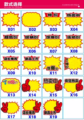 Plus size rewritable supermarket clothing promotional explosion sticker POP advertising paper Special price tag Price tag