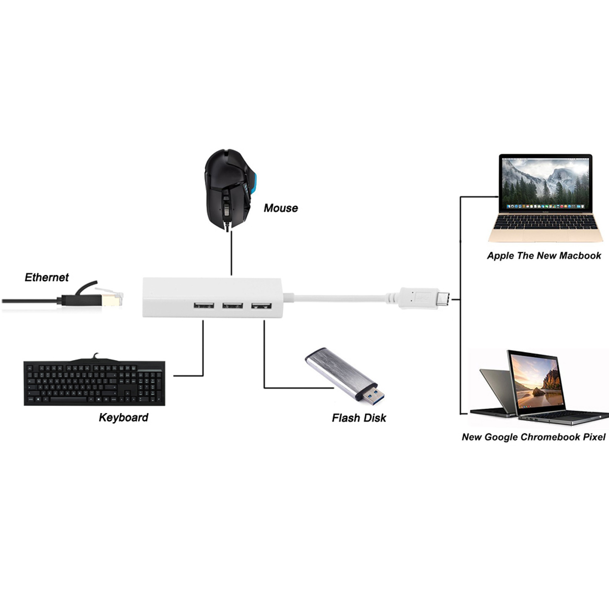 CY USB 3 1 Type C USB-C three-port HUB hub with network card New Macbook Air