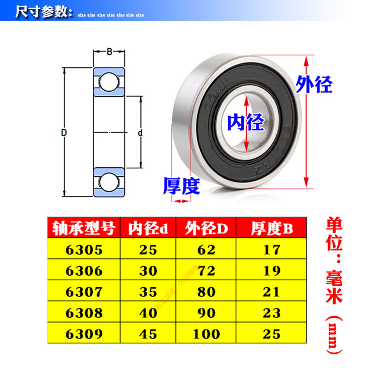 CGJF 6305RZ 25*62*17mm CGJF 6306RZ 30*72*19mm CGJF 6307RZ 35