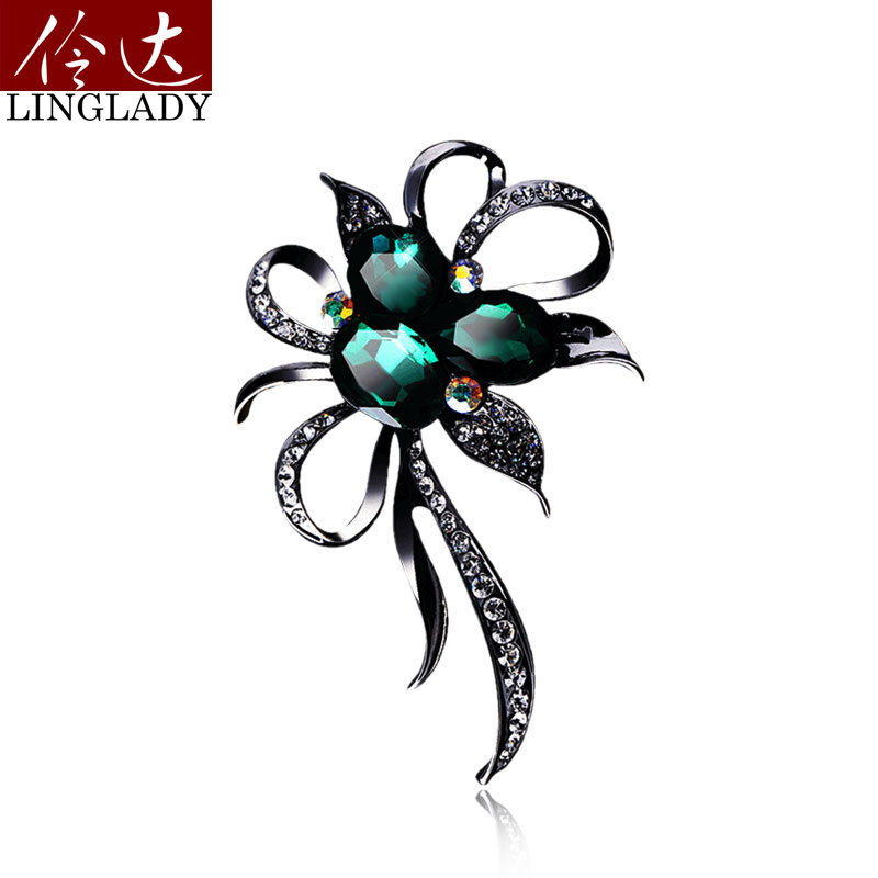 Lingda Ornament New Korean Version Ink Green Imitation Crystal Flower Brooch Female Flow Line Chest Flower Pin accessories Accessories Temperament