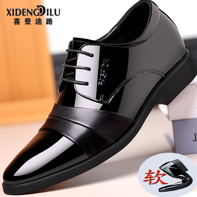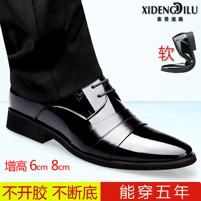 Leather shoes men's spring and summer hollowed-out heightened business formal dress British pointed toe breathable lacing Korean version pointed toe casual wedding shoes
