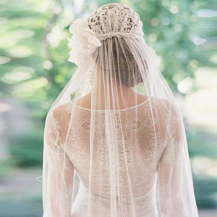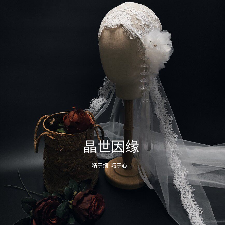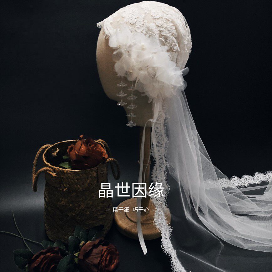 Jingshi Karma bride Fairy beauty lace veil Forest retro flower hat veil Travel style veil