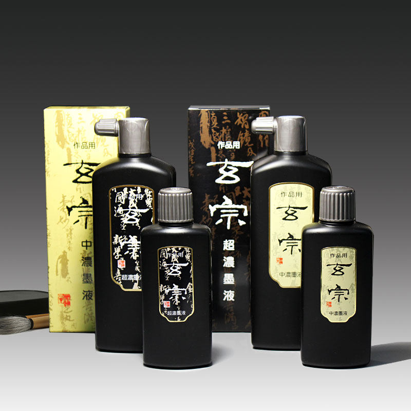 Two bottles of ink tray Japan Mo Yuntang imported 200 500ml Xuanzong Xuanming medium thick ink liquid Ultra-thick fume ink Zhu liquid ink Color hook draft calligraphy and calligraphy practice creation products