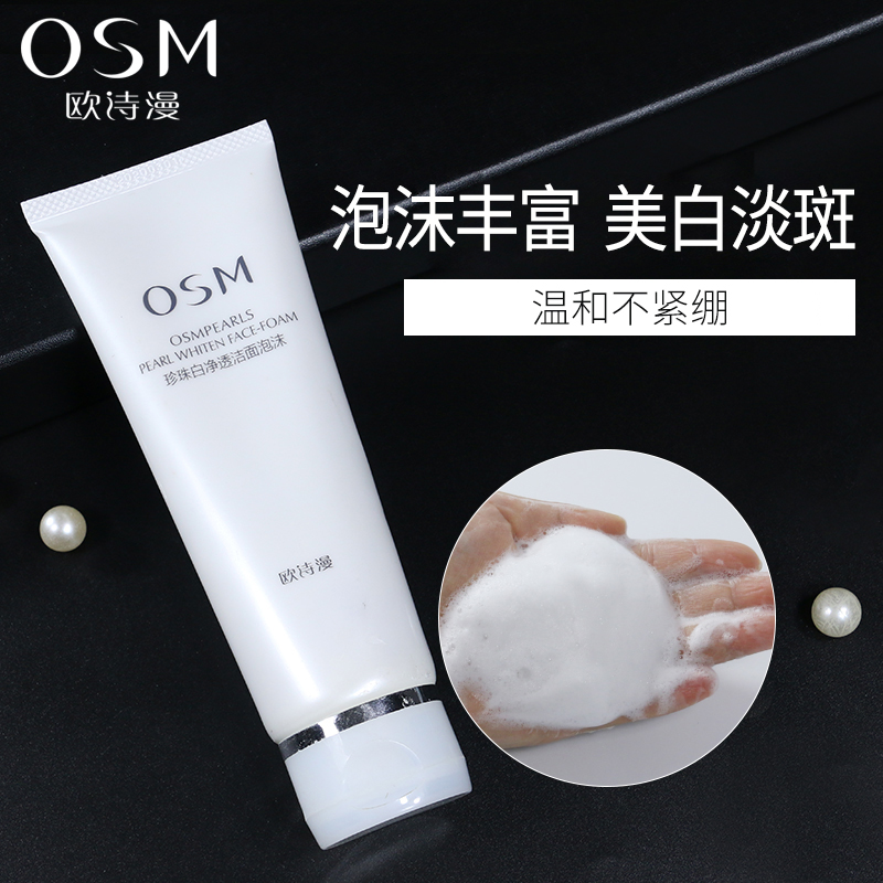 Ou Shi Man Pearl white facial cleanser Female whitening blemish cleansing foam Deep cleansing pores hydration moisturizing