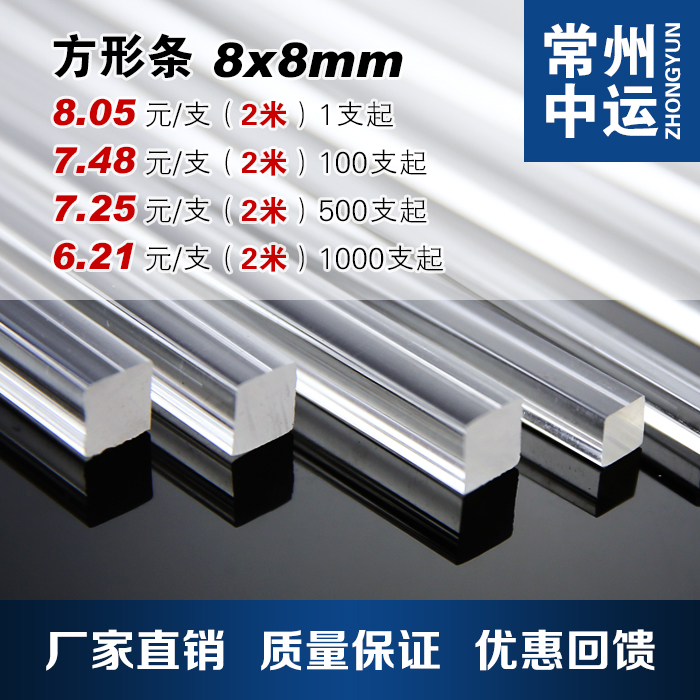 Popularity Acrylic PMMA Reinforcement Square Strips Transparent Organic Glass Square Stick 8X8 Length Arbitrary Cut Low Price