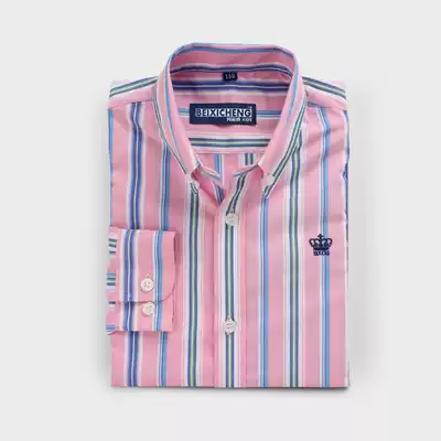 2021 spring and autumn new boys long-sleeved shirt children's striped shirt cotton shirt medium and large children's pointed collar shirt