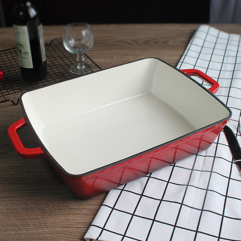 Outer red inner White 33*26 * 8cm34x26cm rectangular enamel outer blue inner black frying plate 33CM rectangular enamel frying plate 34x26cm rectangular enamel outer red inner black frying plate