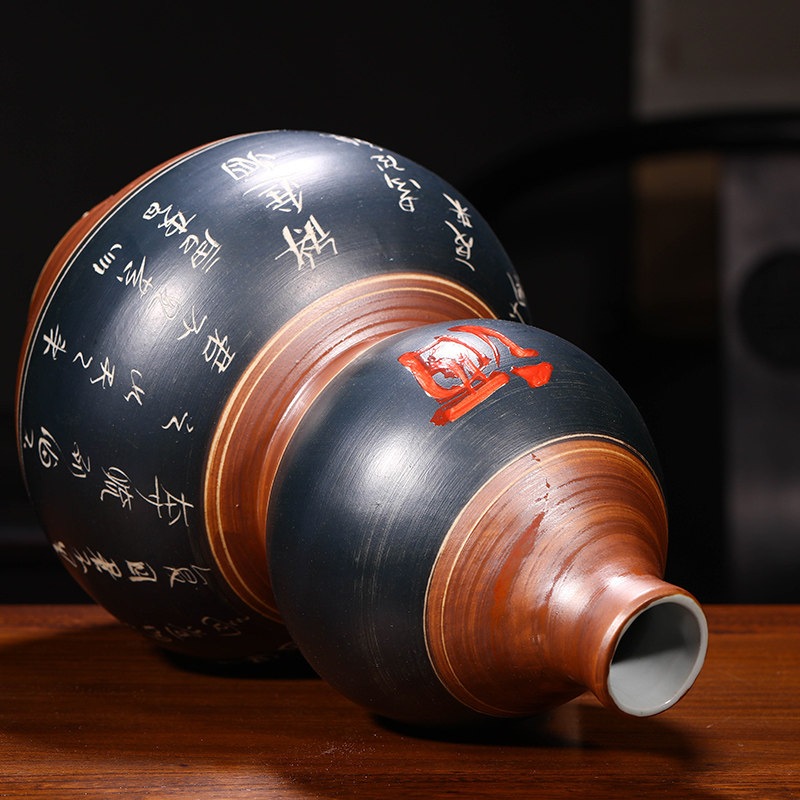 Household 5 jin 10 jin ceramic sealed bubble wine bottle wine jar wine tank Jingdezhen antique carving liquor gourd wine jug