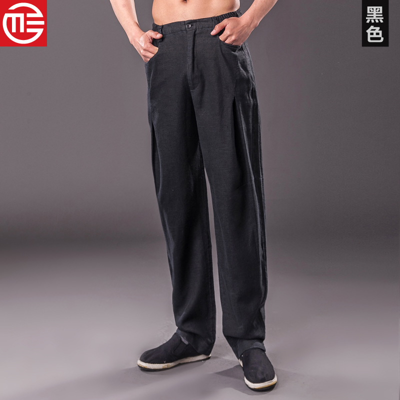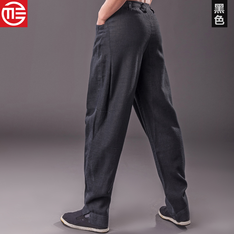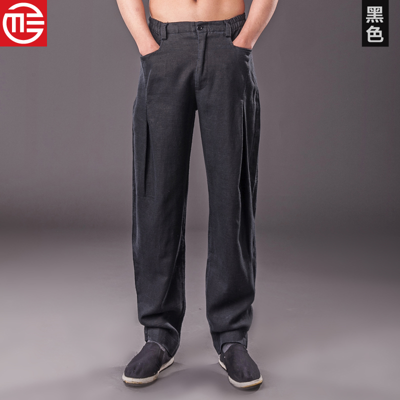 Chinese vintage linen harem ankle pants men's cotton linen casual pants tang loose trendy men's smoke pipe pants