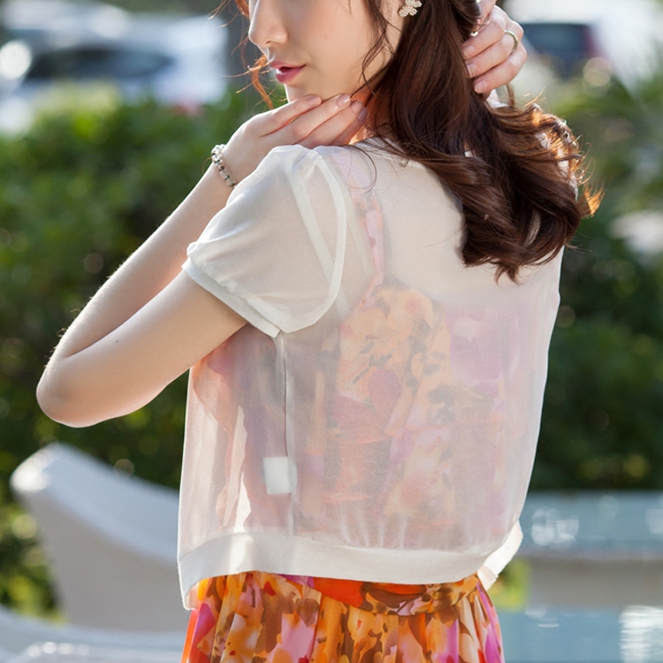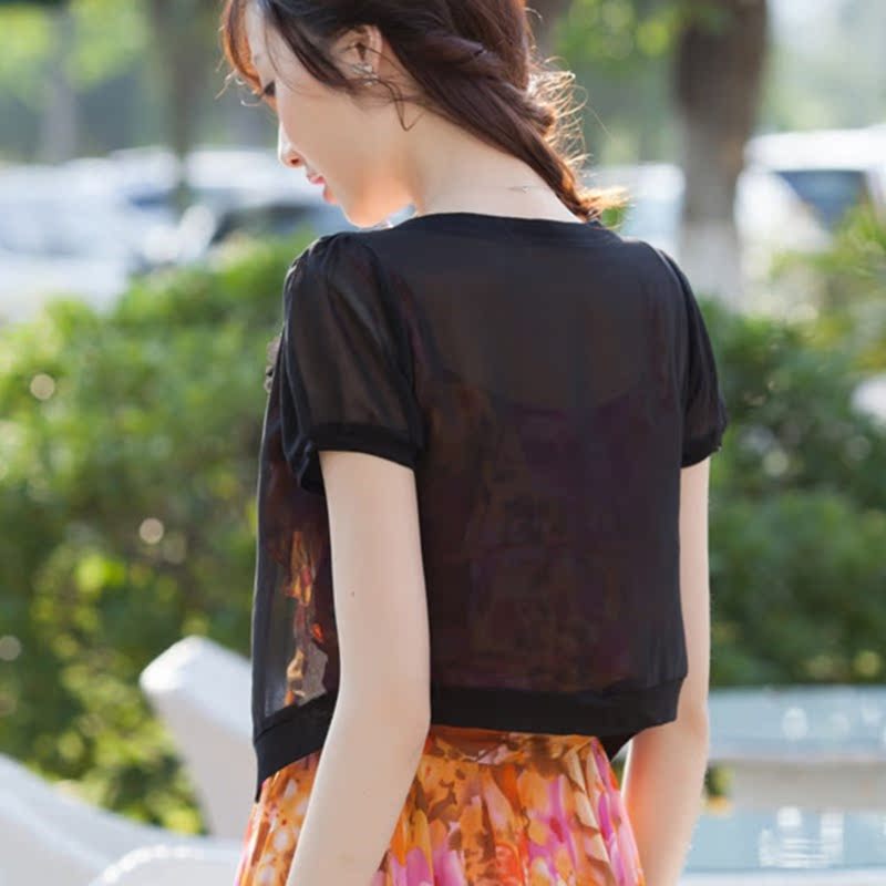 Summer chiffon small shawl women's summer all-match short-sleeved waistcoat short sunscreen thin section large size cardigan