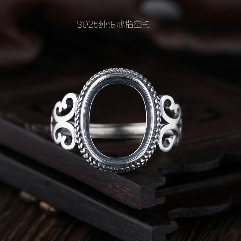 S925 sterling silver ring empty holder DIY inlaid turquoise beeswax ring holder retro sterling silver empty holder 10*13 13*18