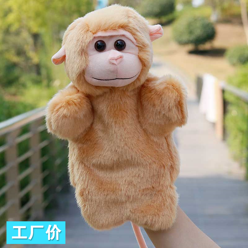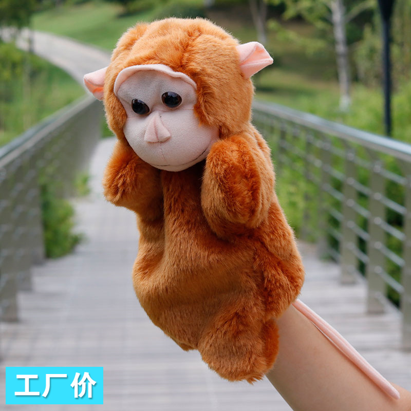 Hot selling a pro-little monkey hand puppet toy large plush animal finger doll baby comforting early education gloves