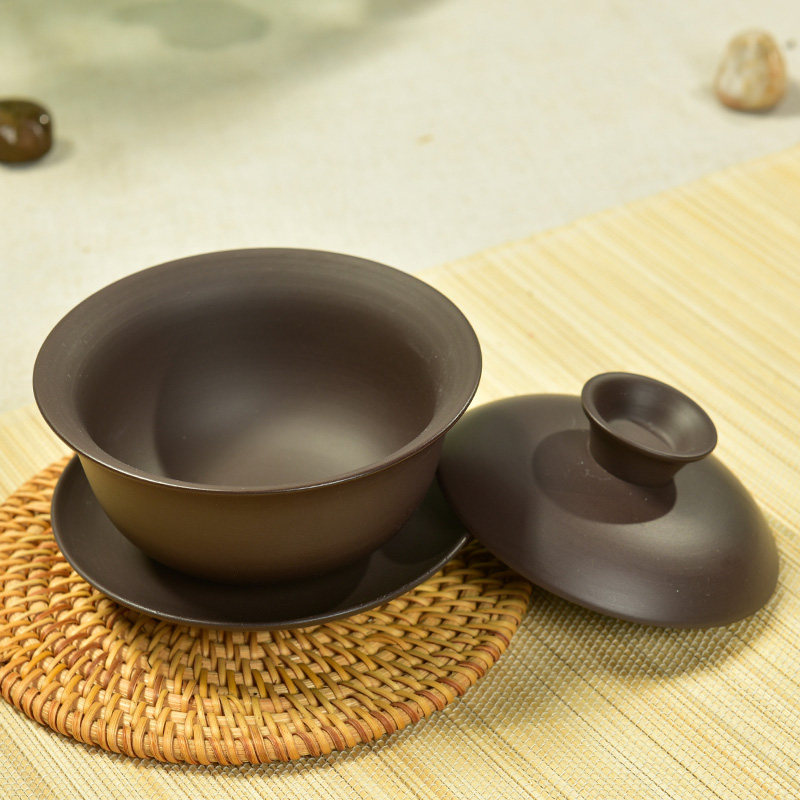 Yixing original mine Purple sand cover bowl Kung Fu tea set Three-year-old bowl Three-year-old cup to tea cup Large tea bowl teapot