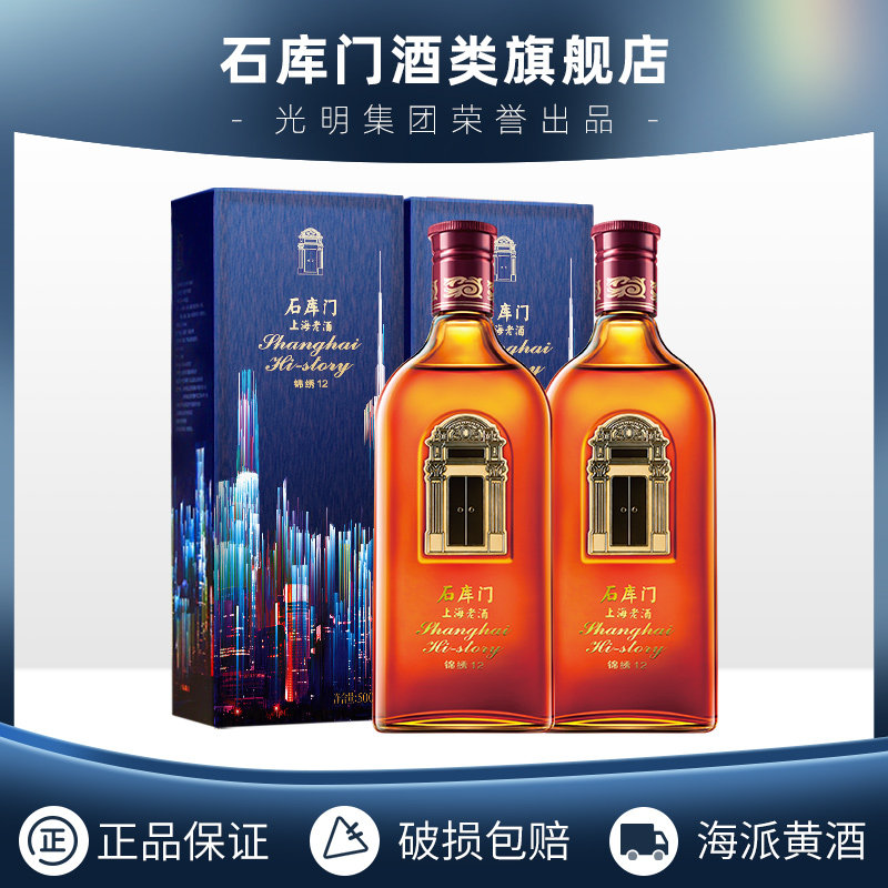 Shikumen Yellow Wine Brocade Embroidered 12 Vintage Wine 500ml * 2 Double-Branch Fashion Gift Shanghai Featured Annual Goods Gift Box