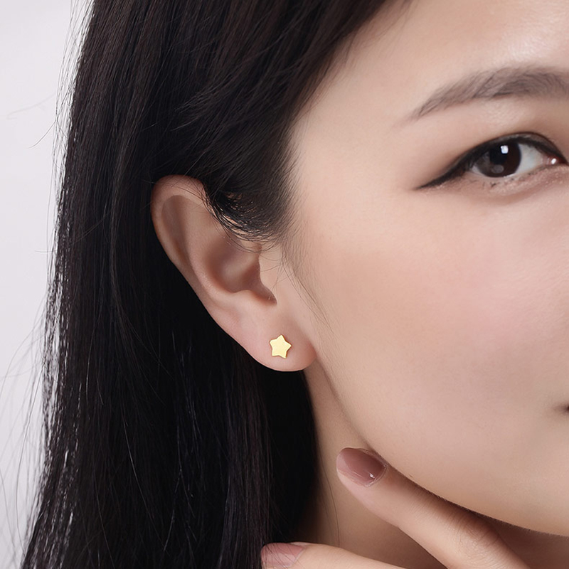 Ming brand jewelry foot gold ear needle star-faced gold earring earring simple female compact AFH0016